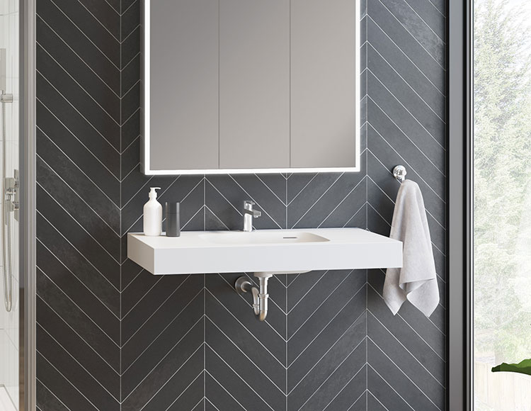 Refined and purposeful, this matte white solid surface sink brings together modern design and everyday practicality in one seamless package. Its minimalist shape and exposed plumbing aesthetic make it the perfect focal point for bold, design-led bathrooms.